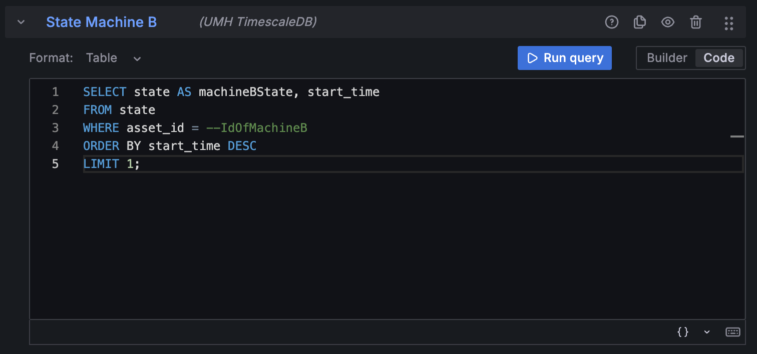 - Set the color of the Machine B state rectangle dynamically based on the value retrieved from the query.