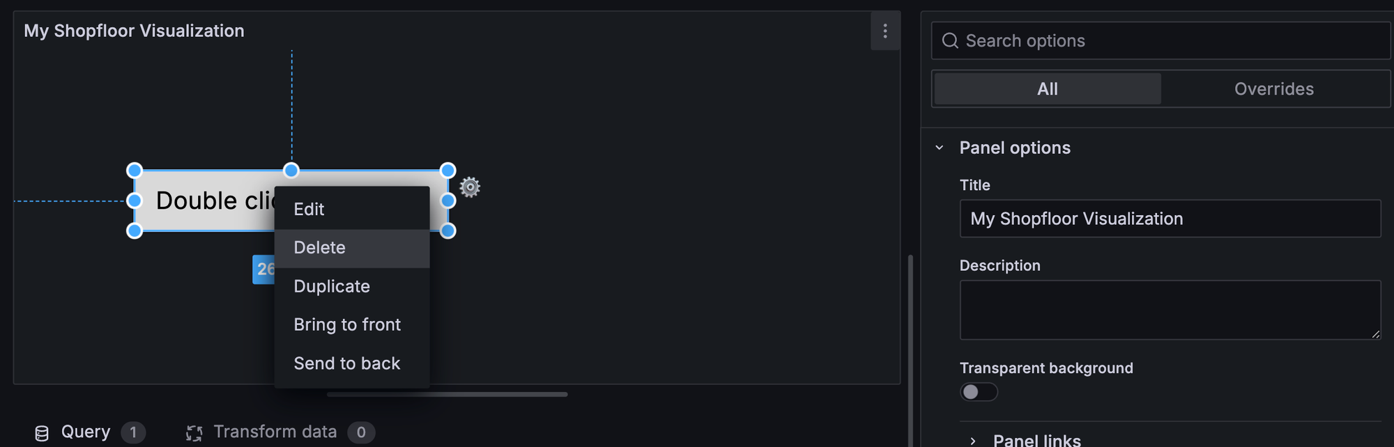 - Rename the default panel to “My Shopfloor Visualization” and delete the default canvas element.